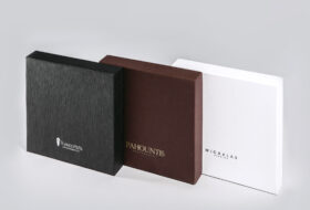 Τα χειροποίητα επενδυμένα με χαρτί κουτιά μας είναι προσεγμένα και στη παραμικρή λεπτομέρεια. Το κουτί αποτελείται από δύο τμήματα, το πάνω και το κάτω μέρος. Ένα ιδιαίτερο νεύρο περιμετρικά στο καπάκι προσφέρει μια πολύ κομψή γραμμή σε όλο το κουτί και κάνει την παρουσίαση του πολύ ποιοτική. Τα 6 διαφορετικά χρώματα θα καλύψουν σχεδόν όλες τις χρωματικές σας προτιμήσεις. Υπάρχει δυνατότητα έγχρωμης εκτύπωσης ονομάτων ή λογοτύπων στο καπάκι. Μπορείτε επίσης να δημιουργήσετε κλισέ με ασημοτυπία ή χρυσοτυπία, προσδίδοντας φροντισμένη αισθητική στην κατασκευή του κουτιού.