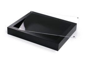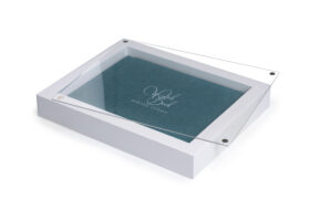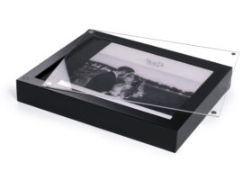 Πολυτελέστατα κουτιά από ξύλο βαμμένα με λάκα ματ και καπάκι plexiglass με 4 μαγνήτες για να κλείνει με ασφάλεια. Ο ιδιαίτερος σχεδιασμός τους αφήνει το εξώφυλλο του άλμπουμ ορατό, αναδεικνύοντας την επιλογή σας και συνθέτοντας ένα ολοκληρωμένο προσφερόμενο προϊόν προς τους πελάτες σας. Διαθέσιμα σε τρία χρώματα: μαύρο, λευκό και φυσικό χρώμα.