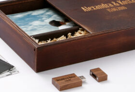 Ένα προϊόν που συνδυάζει παρουσίαση εντύπων φωτογραφιών 13 x 19 εκ. και USB3 Stick με ψηφιακά αρχεία. Υπάρχει δυνατότητα έγχρωμης εκτύπωσης ή χάραξης laser στην επιφάνεια του κουτιού. Διαθέσιμα σε 6 αποχρώσεις: απόχρωση opac ice , opac menta , λευκού, μαύρου, καφέ, oregon και φυσικού ξύλου.